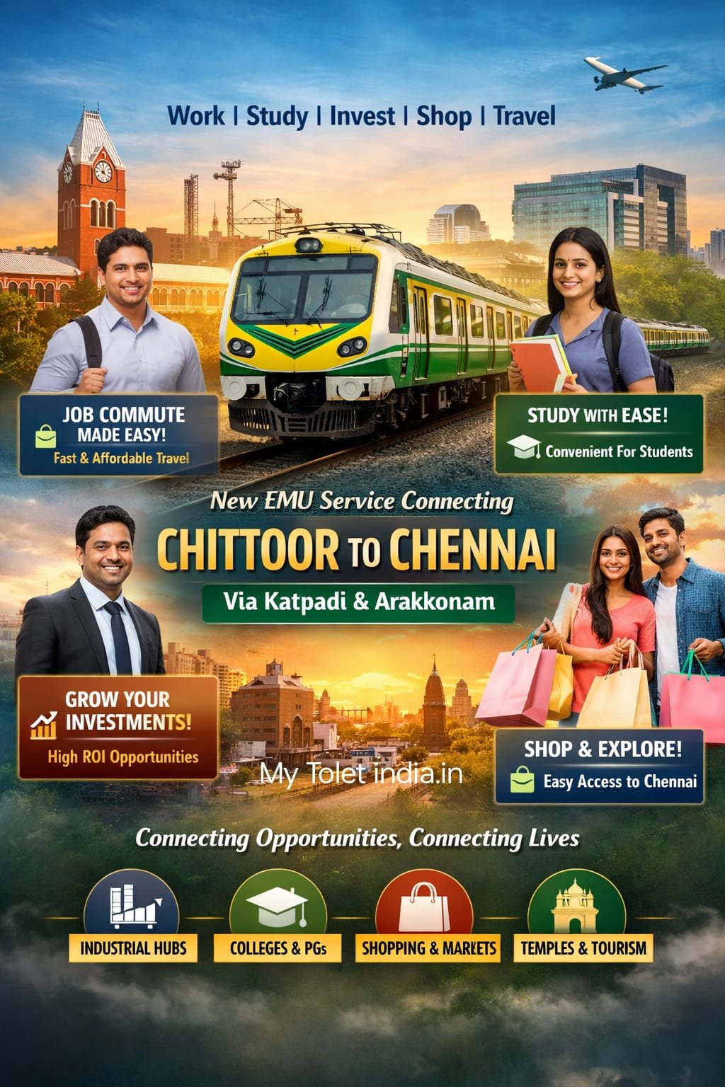 With Chennai being a major hub for IT, manufacturing, healthcare, and services, a direct EMU train would enable: